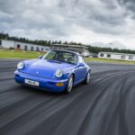 This car is original 964 RS Sport/Lightweight produced in 1992. There were four basic versions of the 964 RS: Sport /Lightweight, Carrera Cup (001), Touring (002) and Competition – N/GT (003). Sport version was a stipped out version of the Carrera 2. The suspension was lowered 40mm and the brakes came from the Turbo in the front and from the 964 Cup car in the back. The car was lightened and the the standard Sport/ Lightweight version weighted 1220 kg .